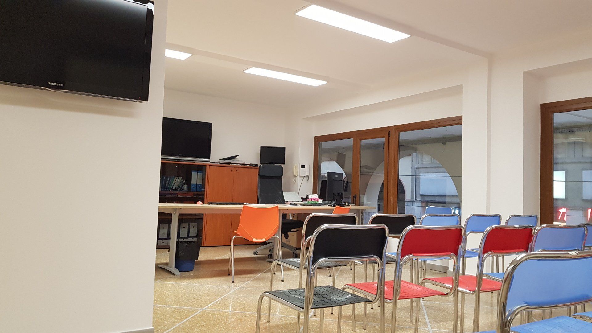 L'ambiente nella sede di Via Grande è in grado di ospitare fino a 40 posti a sedere, con la possibilità di occupare ambienti più ampi per assemblee condominiali più numerose.